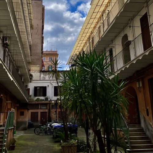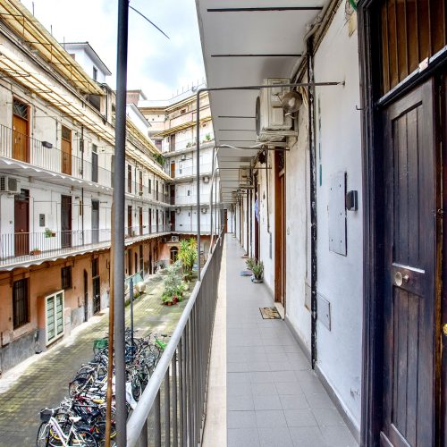 Il palazzo che ospita il San Lorenzo Studio Flat è una rarità architettonica. Costruito nei primi del Novecento per accogliere gli operai delle ferrovie, conserva ancora oggi il fascino storico dei suoi ballatoi interni, una caratteristica sempre più rara a Roma. Questo dettaglio conferisce all’edificio un’atmosfera autentica e suggestiva, che racconta la storia del quartiere e della città.
