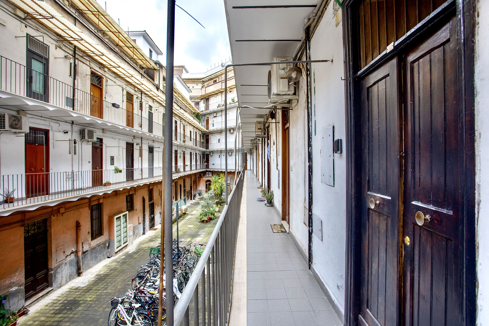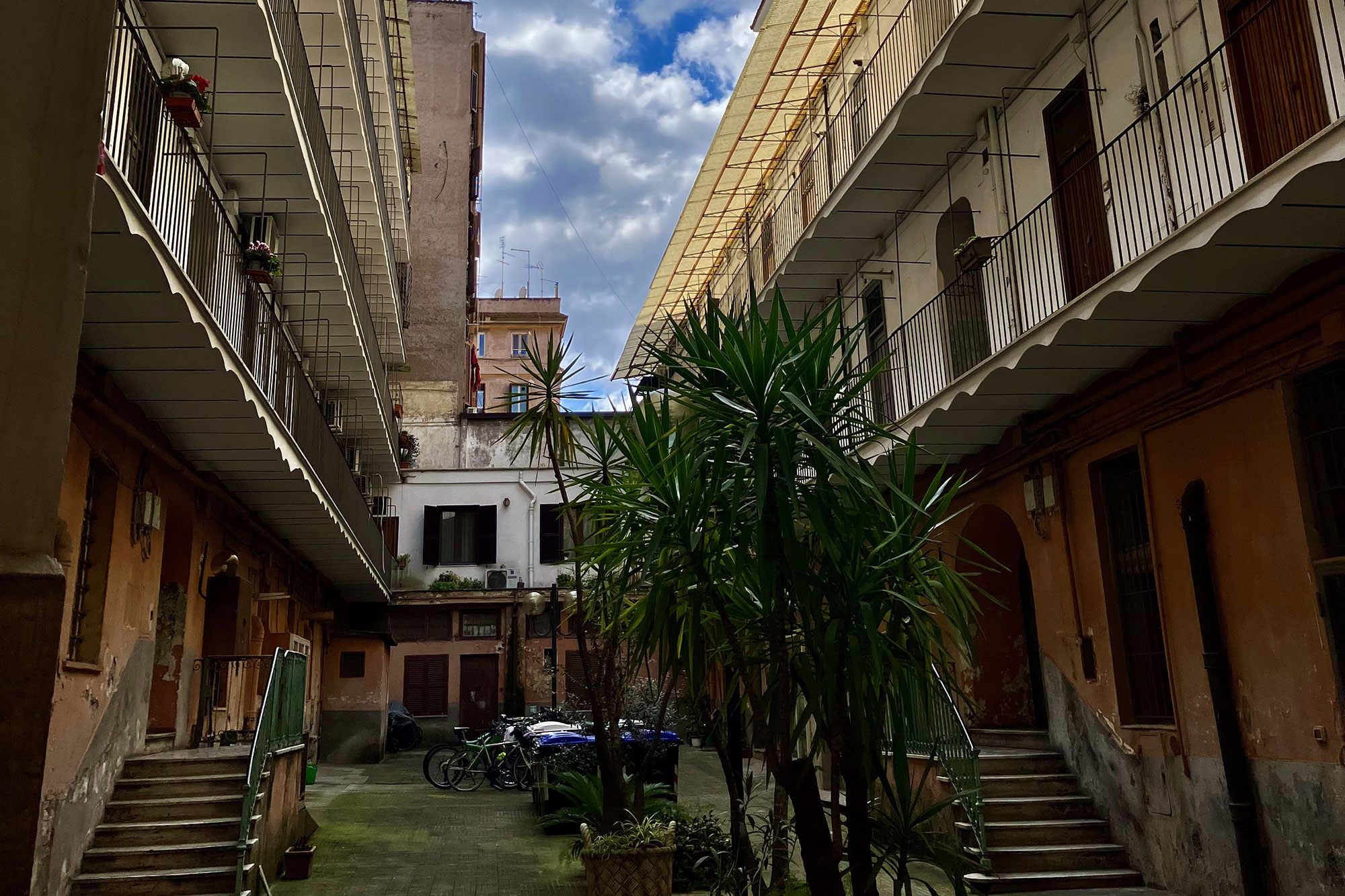 Il palazzo che ospita il San Lorenzo Studio Flat è una rarità architettonica. Costruito nei primi del Novecento per accogliere gli operai delle ferrovie, conserva ancora oggi il fascino storico dei suoi ballatoi interni, una caratteristica sempre più rara a Roma. Questo dettaglio conferisce all’edificio un’atmosfera autentica e suggestiva, che racconta la storia del quartiere e della città.