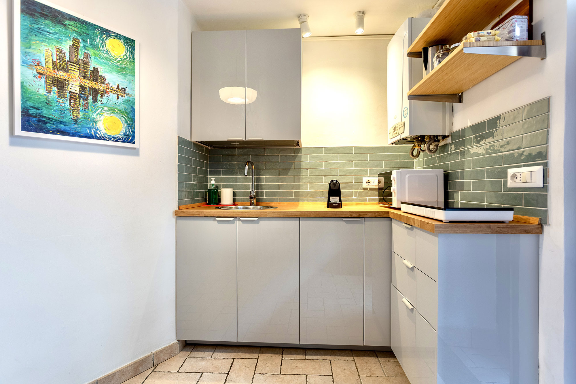Lo studio è un vero e proprio monolocale indipendente, perfetto per chi cerca privacy, tranquillità e comodità. Arredato con gusto e attenzione ai dettagli, offre uno spazio accogliente e funzionale, completo di ogni comfort per sentirsi subito a casa: angolo cottura attrezzato, Wi-Fi, aria condizionata, riscaldamento autonomo e molto altro.